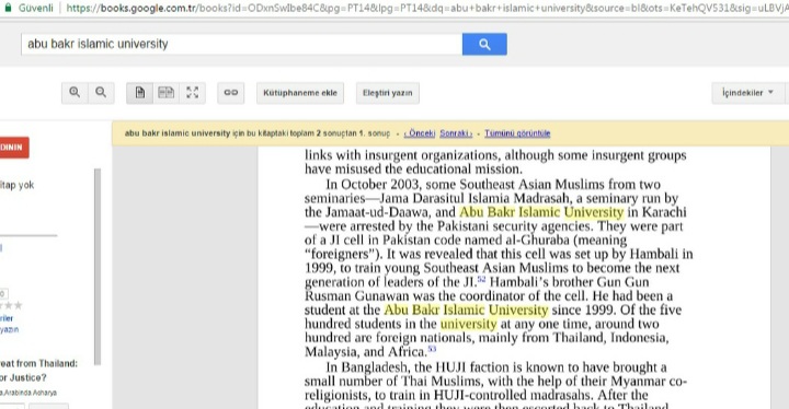 2- Ebu Bekir medresesi denilen yer Pakistan hükümeti tarafından radikal cihatçı örgütlerin toplanma yeri gerekçesiyle yapılan operasyonda SİLAHLI ÇATIŞMA sonucu kapatıldı.