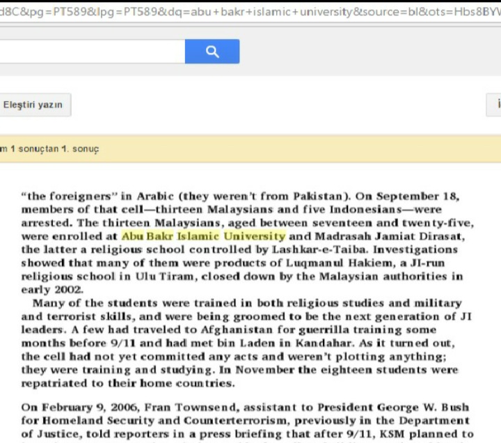 Adlı kitabın içeriğinde PAKİSTAN güvenlik güçleri adı geçen bu okulun EL KAİDE ile lişkili olduğunu,