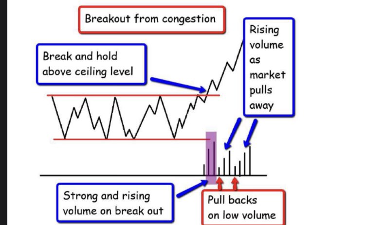 Volume can confirm a breakout and shows signs of accumulation/ distribution . The longer the consolidation the bigger the breakout