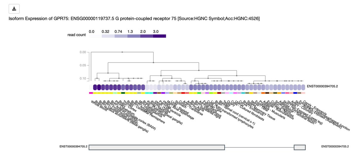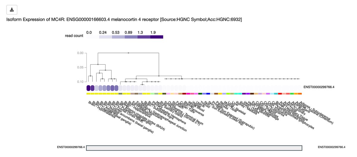 Both MC4R and GPR75 have a simple transcript structure. Both has only one transcript that is predominantly expressed in brain. MC4R has just only one exon and GPR75 has two (45 of the 46 identified lof variants lie within exon 2)