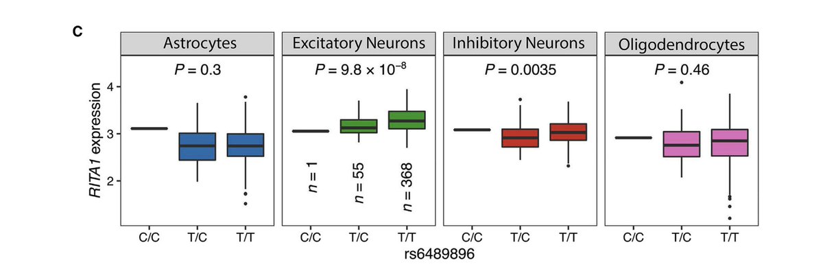 It's not clear which one is the causal gene though. The deletion seems to reduce a nearby gene RITA1 expression in multiple brain regions but the eQTL evidence for TPCN1 was evident only in non-brain tissue.