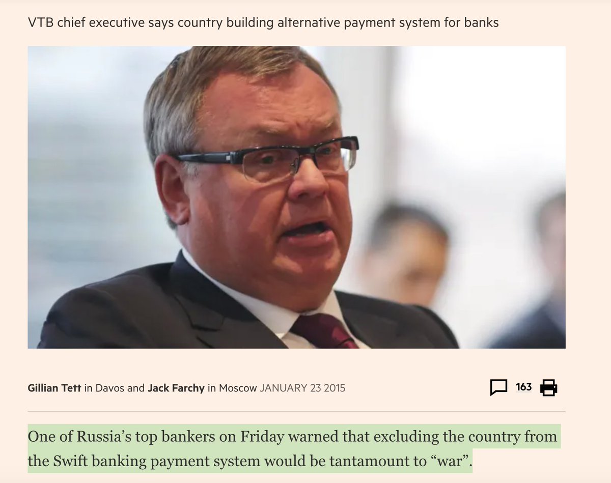 24 Analysis. Russian strategists are thinking a lot about economic conflict, and are decreasing their reliance on the Western financial system by building alternatives to Swift, to Mastercard/Visa and by selling dollars and buying gold and cryptos --> forbes.com/sites/laurashi…