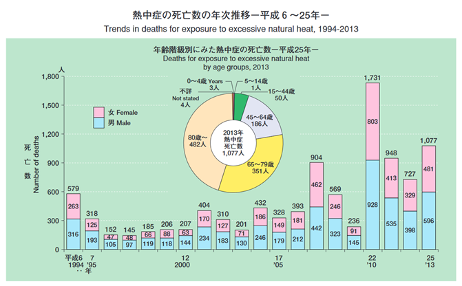 то таки не соглашусь: каждый год от жары умирают сотни японцев (иногда и даже больше 1000 случаев). Конечно, почти половина – люди от 80 лет, ещё около трети – люди 65-79 лет, то есть почти 80% - это те, кто попадает в категорию «пожилые» (хотя мне в Японии, конечно, =>