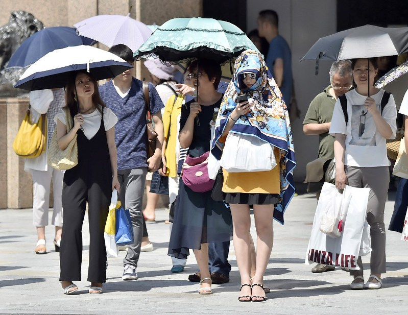 ...говорят друг другу что-то из этого набора с контекстом: «ну и жарища же сегодня». Да, вы же обратили внимание, что ещё один признак жары - расрытые зонтики. "日傘" (хигаса) - "зонт от солнца" (тоже не очень понятное на русском выражение? Или уже все знают, пользуются?)