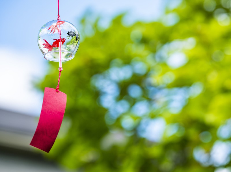 風鈴, фурин, «колокольчик», но не любой колокольчик (для всех остальных есть просто слово 鈴, судзу), а тот, что звенит исключительно от дуновения ветра. Их делали и бронзовыми, и керамическими, и стеклянными (когда научились стекло выдувать, а кондиционеры ещё не придумали).