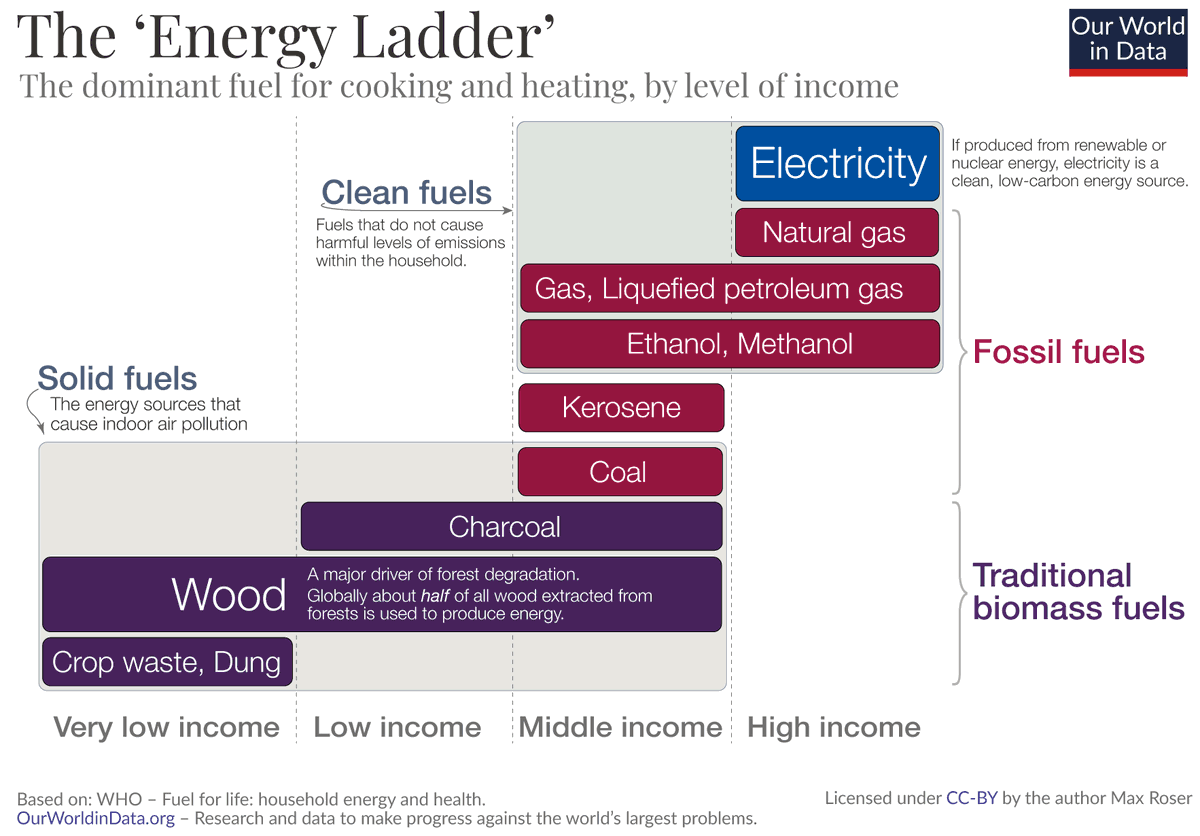 The poorest households burn wood and other biomass, like crop waste and dried dung.