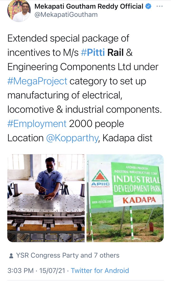 Pitti Engineering-Company is currently reviewing the feasibility of undertaking expansion of its existing manufacturing facilities and accordingly, will be reviewing the viability of setting up the green field project in the State of Andhra Pradesh pursuant to the Incentive Grant