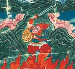 There is an active cult of the 2nd pANDava the incarnation of the great god vAyu in some parts of jambudvIpa. In Nepal there is a vigorous one showing him in bhairava-like form with an Agamika worship. Below are 3 depictions of his acts: 1. jarAsaMdha-vadha