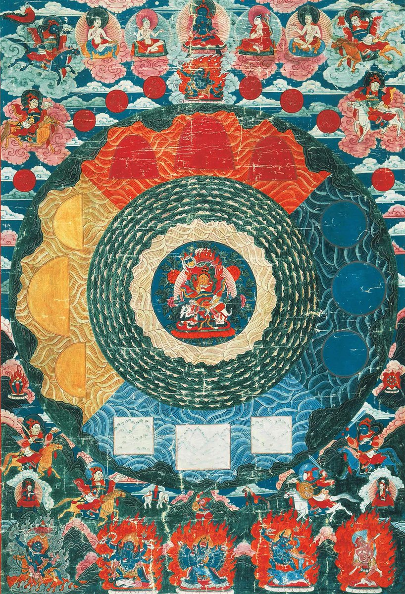The 3 rectangles showing the mahAgiri-s or great mountains of rAjAdhirAja -- a tradition going back to the taittirIya-shruti. below them are the nidhi-s of the elephant and the horse: The former transposed to the distant Buryatia.