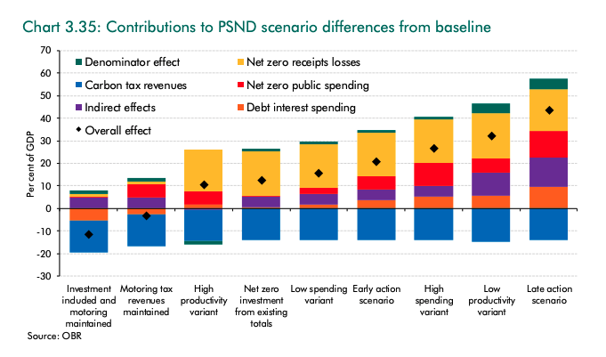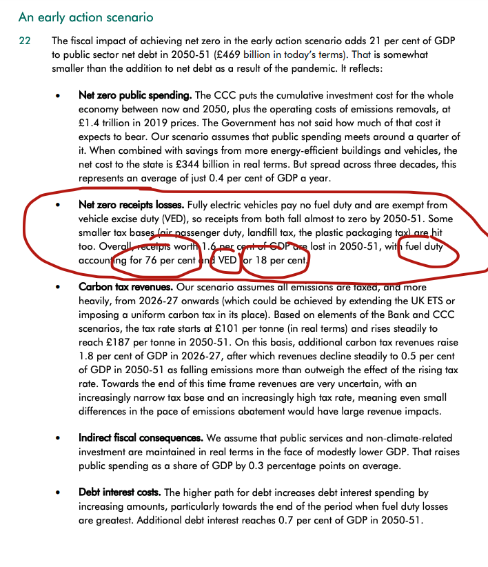 Crucially, however, a huge chunk of this higher debt from meeting net-zero is due to lost revenue from fuel duty and road tax, according to the @OBR_UK