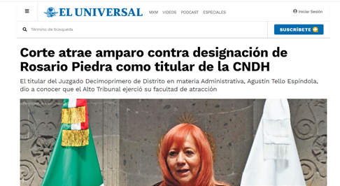 En #México, la Suprema Corte de Justicia de la Nación ha aceptado atraer el amparo presentado contra la designación de la Ombudsperson federal, realizada por el Senado mexicano: bit.ly/2UqzA0r