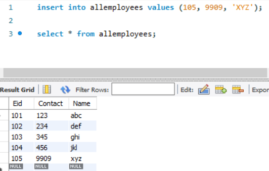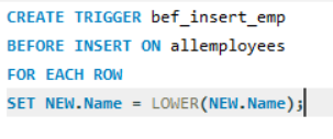 Explanation: A trigger named 'bef_insert_emp' is created on the table 'allemployees'