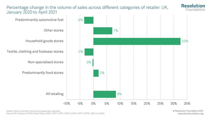 3) This recovery will be more bumpy than current boom rhetoric implies. Some sectors need to shrink as others grow (e.g household goods sales need to fall a lot if hospitality/holiday spending is to recover) and unemployment is likely to be rising just as this cut takes place.