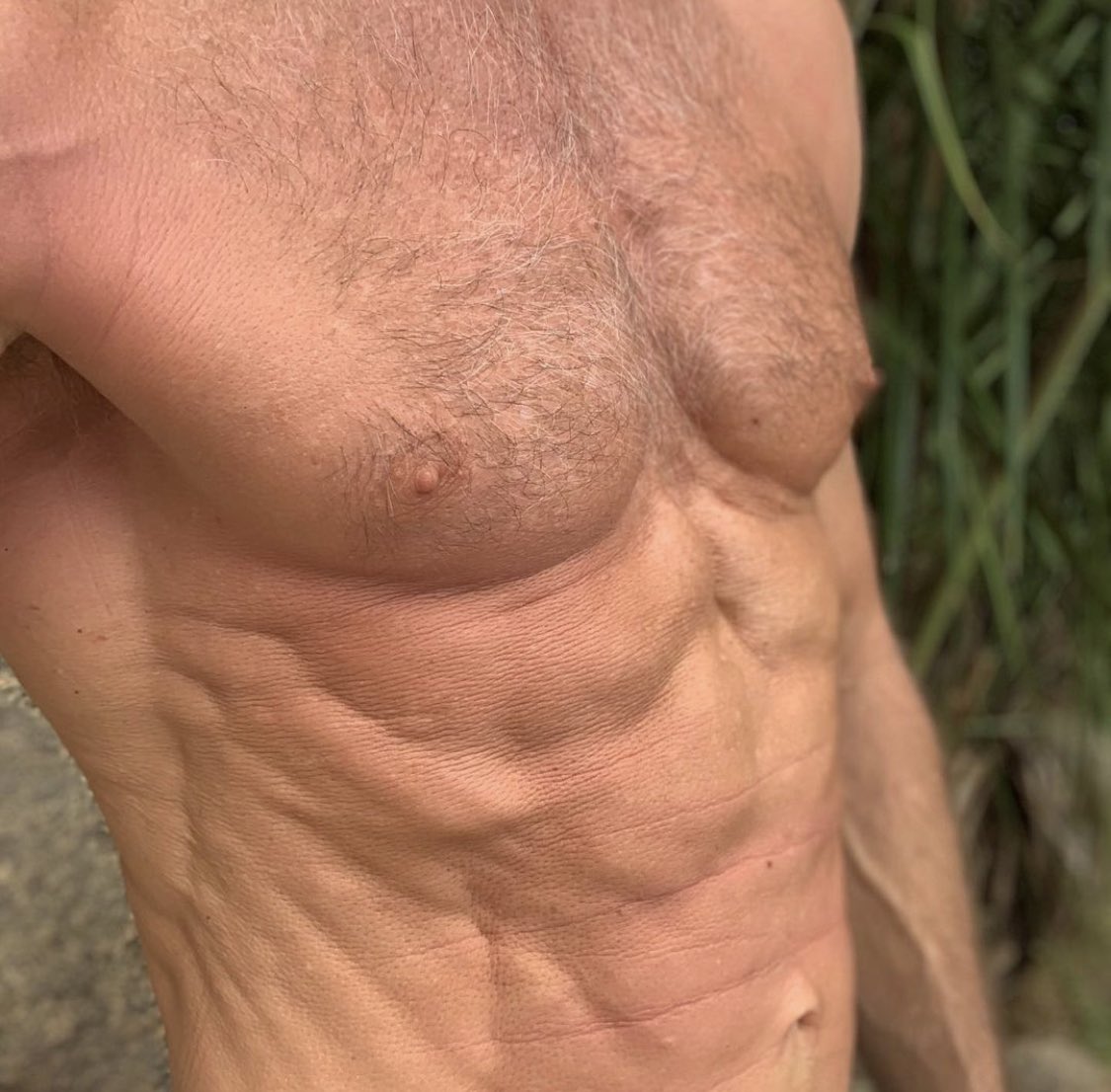 Those photos show the same body, my body. Different abdominal contractions, shapes and looks. -photo 1 is how abs briefly contract when you jump, or hang while tucking knees upward.