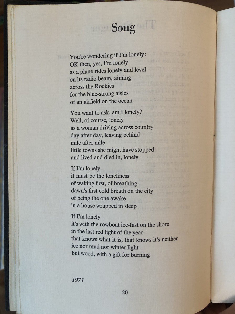 Rich. “You’re wondering if I’m lonely: / OK then, yes, I’m lonely / as a plane rides lonely and level / on its radio beam”