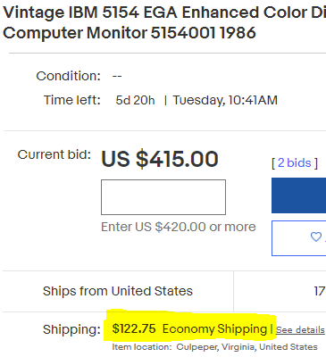 oh yeah and people are bidding it up to over $400! years ago, i thought $150 was an insane price for an old monitor like this. yet here we are. smh.