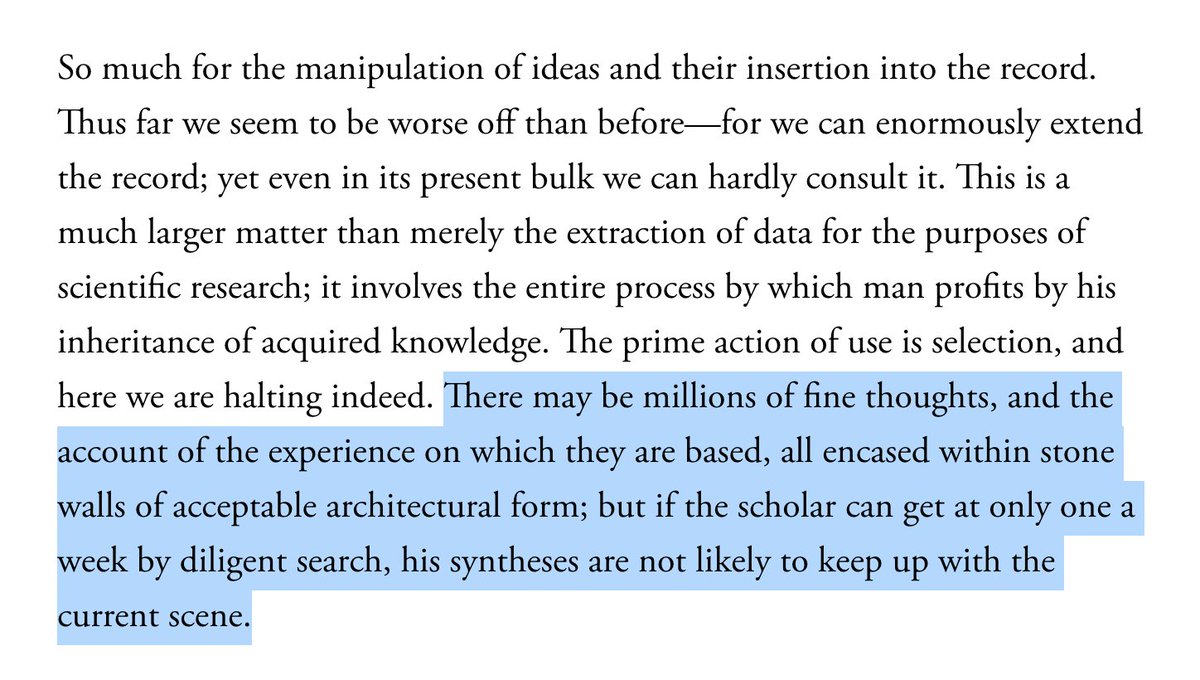 The more I've been using it (since Saturday, when I had an MVP), the more I realize that this kind of a tool is probably my best shot at building a Memex, a system that knows about and lets me search through my entire landscape of knowledge — theatlantic.com/magazine/archi…