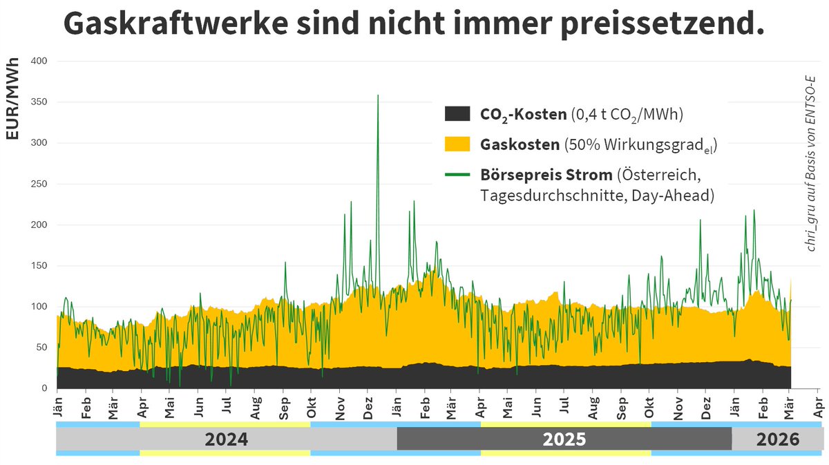 Ein Thread zu Österreich, der zeigen soll, dass wir auf dem richtigen Weg sind. Jeder kennt mittlerweile die Geschichte vom Gaskraftwerk, das den Strompreis für alle setzt. Nur: Das ist oft nicht wahr. Im Winter: Ja. Im Sommer sehr oft: Nein. Dieser Thread 🧵 zeigt genau das.