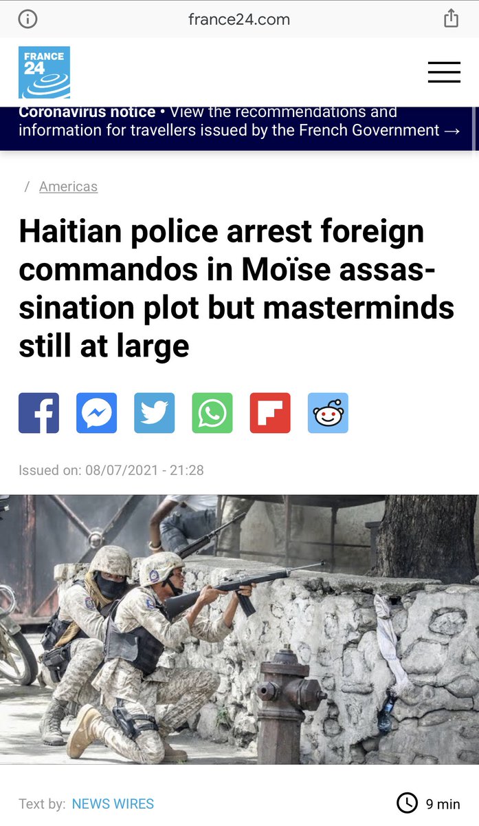 🇭🇹🚨| Le 7 juillet 2021, le président haïtien, Jovenel Moïse est tué par un commando d’étrangers. Un commando de 26 Colombiens et deux Américains seraient responsables de l'assassinat du président selon la police haïtienne. Plusieurs sont arrêtés.