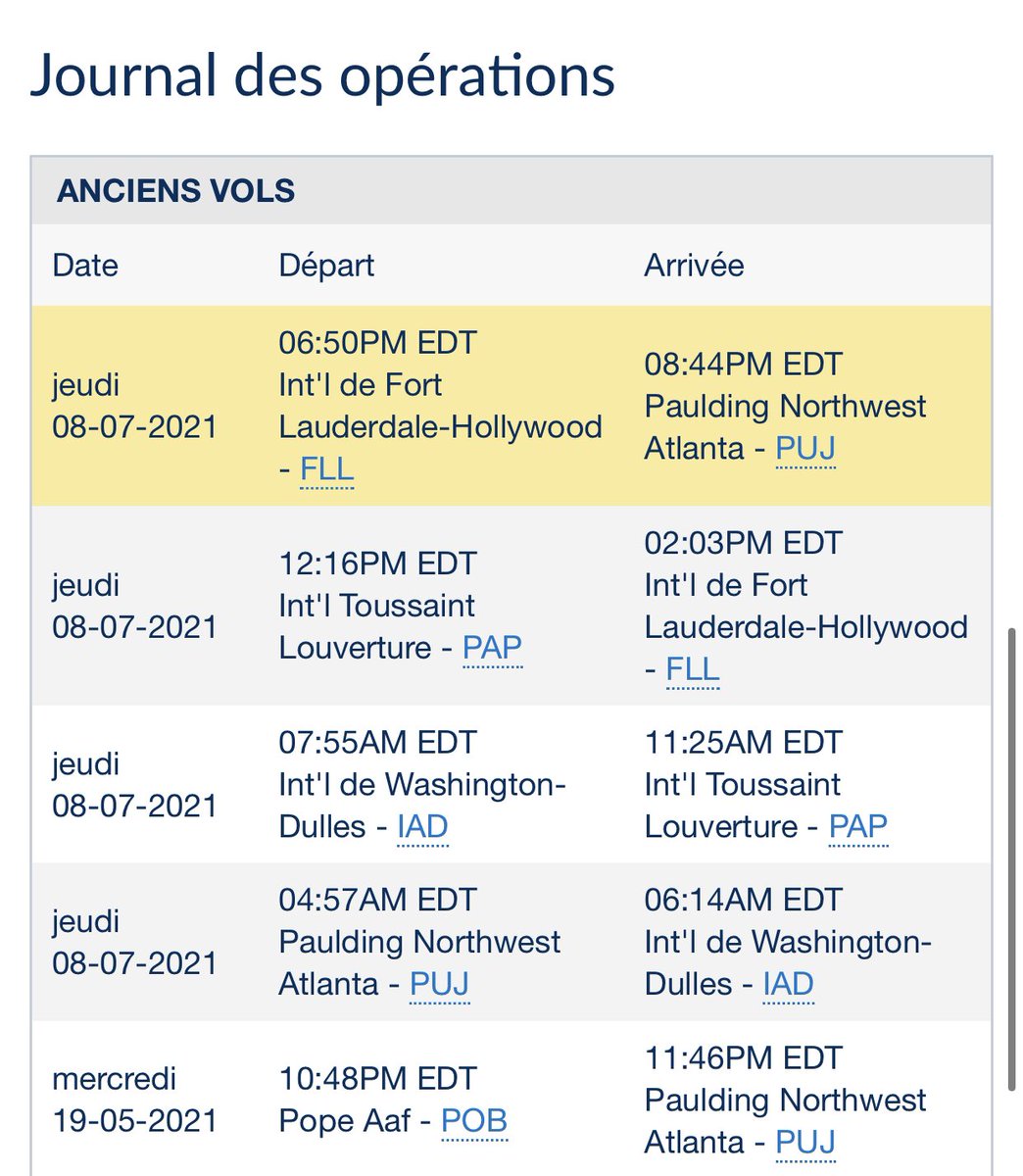 🇭🇹🚨 | Le 8 juillet 2021, l’avion N173PA décolle de l’aéroport international de Washington-Dulles. 3 heures plus tard l’avion atterrit dans l’aéroport de Port-au-Prince-Toussaint Louverture. 51 minutes plus tard l’avion redécolle pour la Floride.