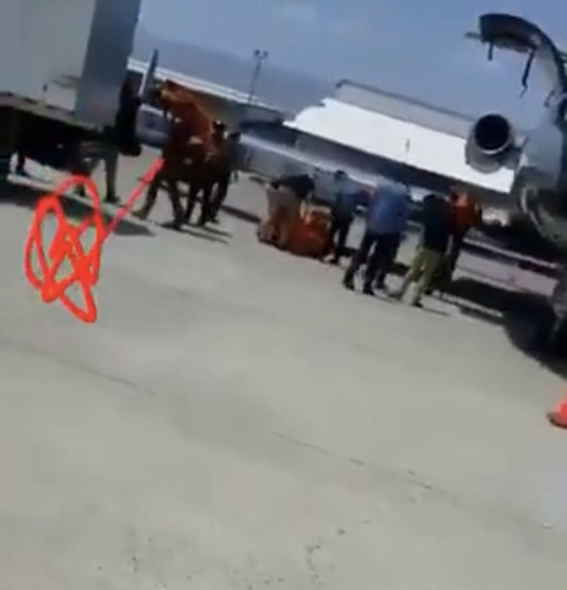 🇭🇹🚨 | Des sacs (?) oranges sortis d’un des deux avions sont en train d’être chargés dans un camion.