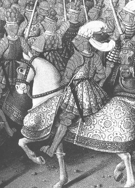 The cavalry charge failed completely as the arquebusiers shot down many and then retreated back while the French struggled with the trench they did not expect, and then faced with Landsknecht pikes. D'Armagnac died himself, the first commander in history to die from a gunshot!