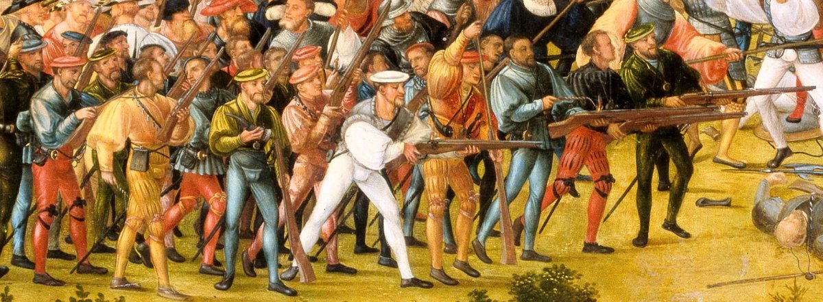 Battle of Cerignola, 28 April 1503, part of Third Italian War. Spain beat France thanks to the brilliant commander Gonzalo de Cordoba who used innovative military tactics. This was the beginning of the "pike and shot" era, the first battle in which such strategy was employed!