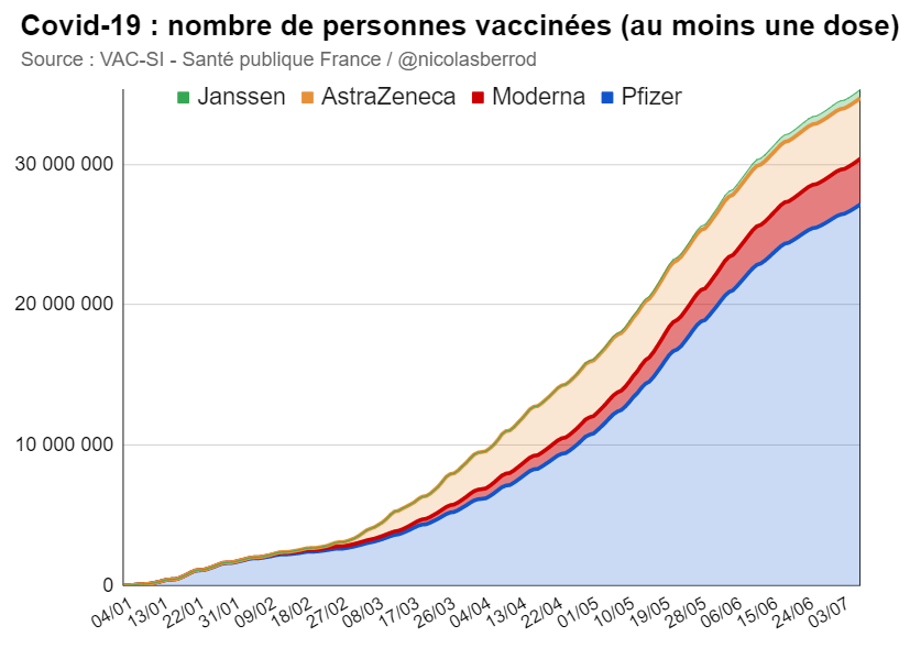 Plus de 35 millions de personnes, dont plus de 27 millions avec #Pfizer, ont reçu au moins une dose de vaccin.