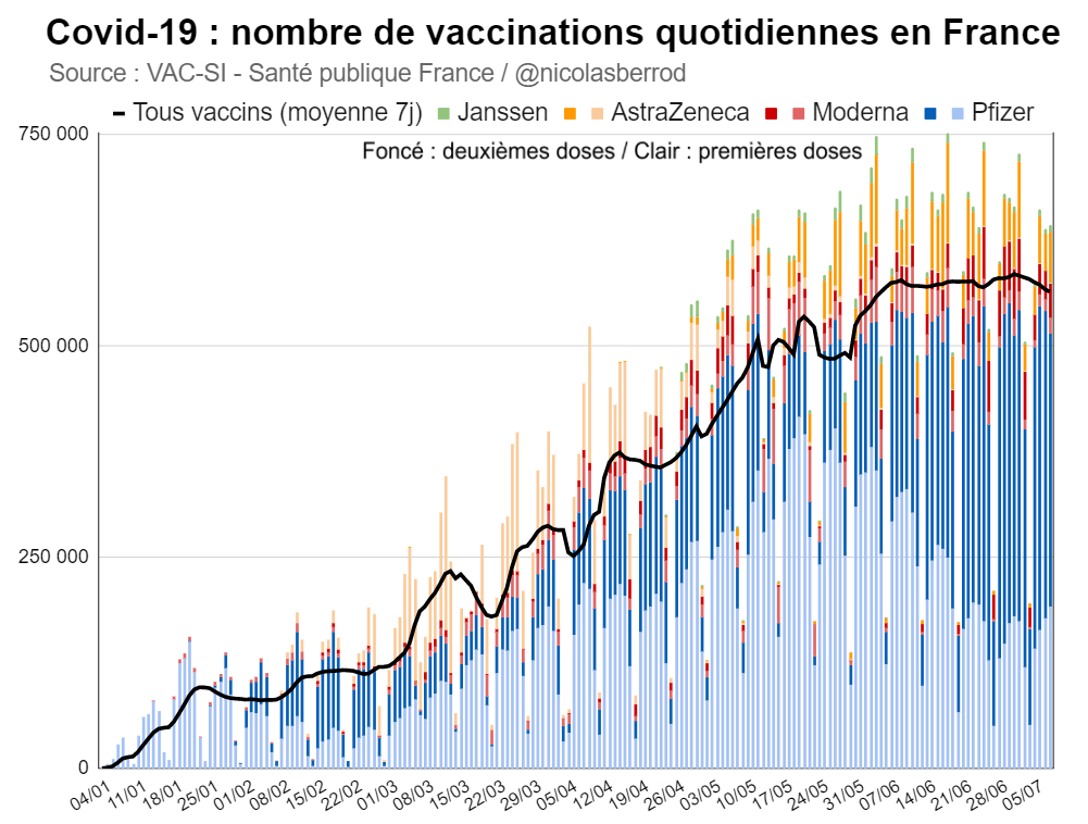 Si les premières injections quotidiennes augmentent légèrement depuis cinq jours, c'est uniquement "grâce" à #Pfizer.