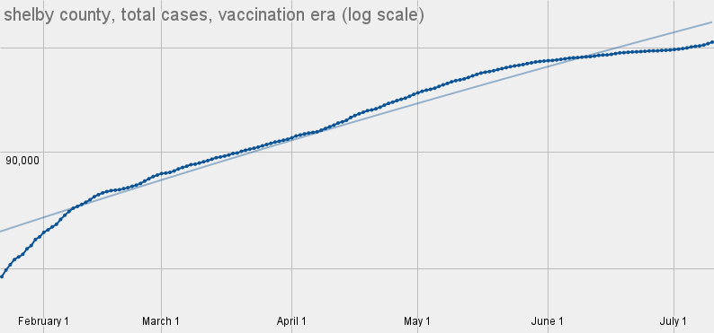 Here's the log scale, if anyone's interested in that. Again, look at July, on the right side, and see how it starts to lift pretty sharply.