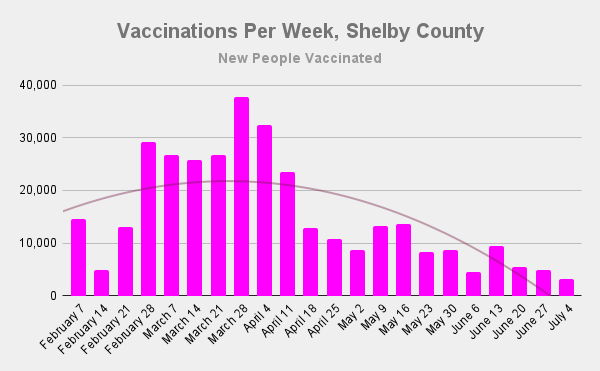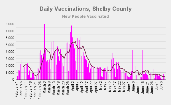 But we set a new low in vaccinations this week, with just 3161 new people vaccinated, fewer than 500 per day.