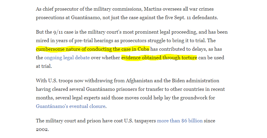 "The 9/11 case has been mired in years of pre-trial hearings as prosecutors struggle to bring it to trial. The cumbersome nature of conducting the case in Cuba has contributed to delays, as has the ongoing legal debate over whether evidence obtained through torture can be used."
