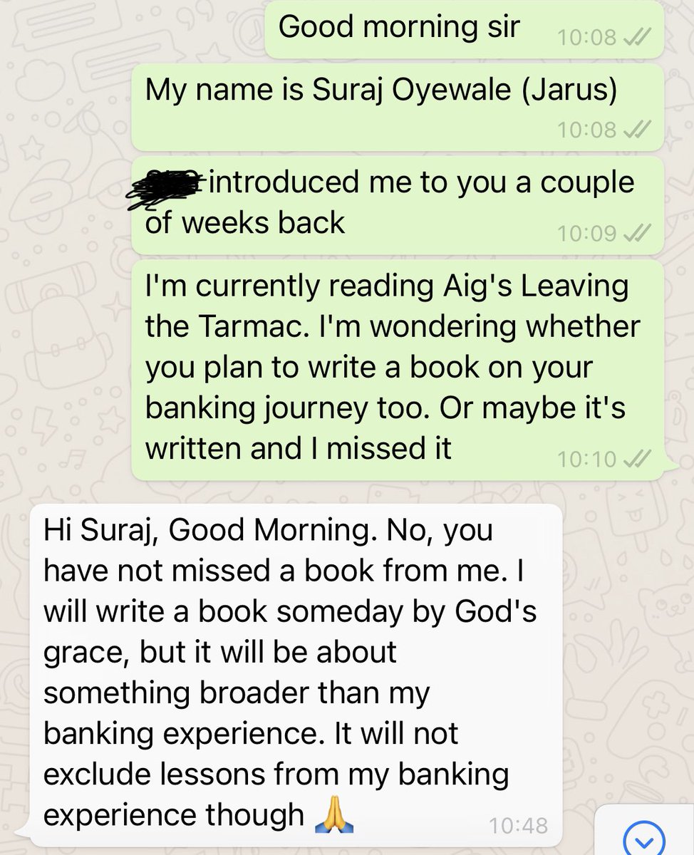 Case 2: Used this for a founder of one of Nigeria's top 7 banks. It wasn't an intro, but it was to lubricate the network. Wanted to be sure he hadn't forgotten me. Brought a topic that I knew he would find interesting. This combines point V and point VI