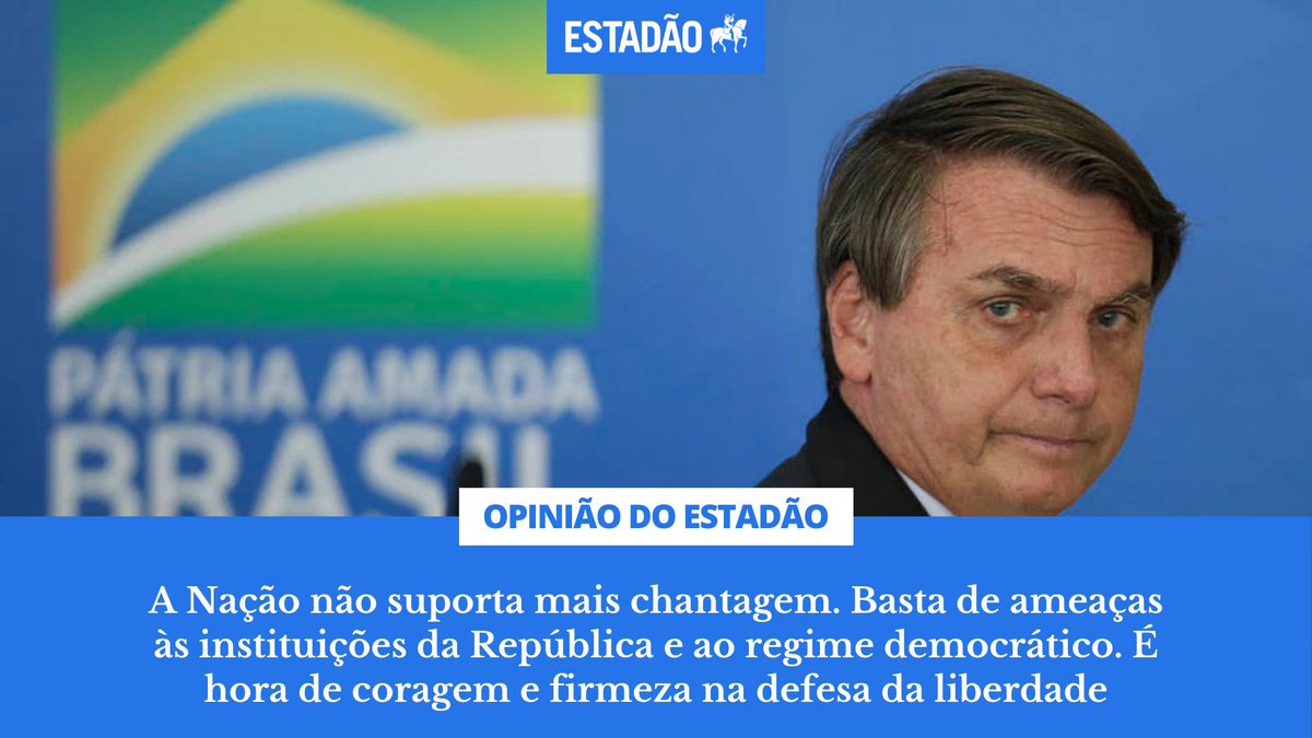EDITORIAL: A Nação não suporta mais chantagem. Basta de ameaças às instituições da República e ao regime democrático. É hora de coragem e firmeza na defesa da liberdade bit.ly/3e68pyC