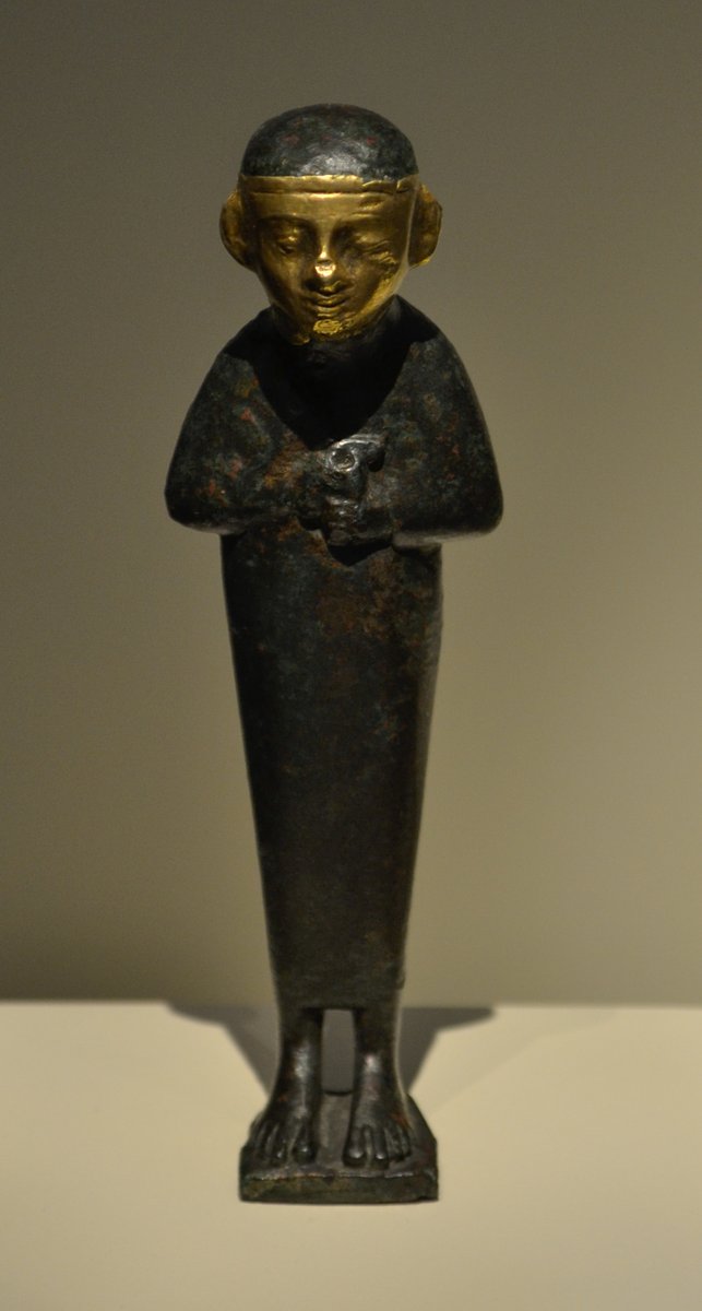 Las esculturas con un baño parcial y fino de oro eran comunes en el Mediterráneo Oriental desde la Edad del Bronce, como vemos en la figura del sacerdote de Gadir que también se encuentra en el @MANArqueologico .