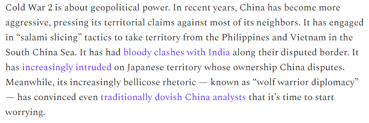 7/Anyway, all of these arguments coming out from the Left assume that China would be a willing, cooperative partner on issues like climate change, if only the U.S. wouldn't be so hawkish and aggressive, etc.