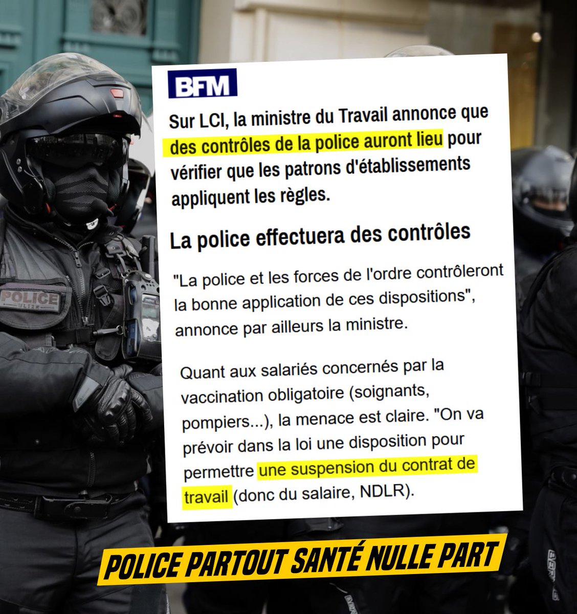Lundi soir, #Macron lançait une nouvelle vague d'annonces autoritaires affolantes : un traçage général de la population, des atteintes graves au droit du travail au nom du #VaccinObligatoire, des menaces contre les soignant-es et