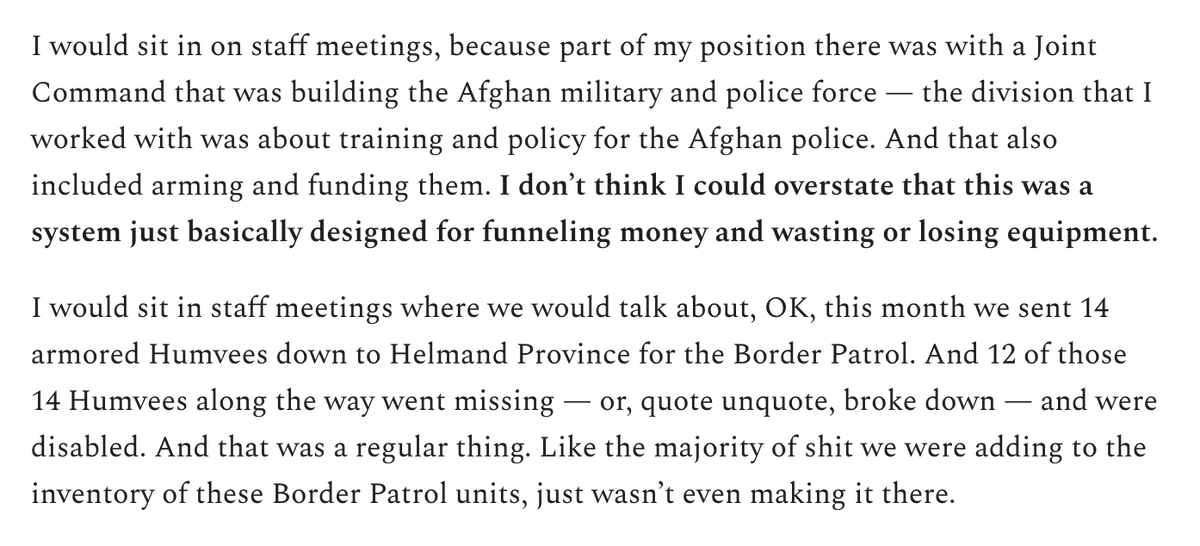 Photos of vehicles and other equipment being left behind at bases as the US withdraws really obscure that chronic, accountability-free waste of resources was a systemic feature of the entire 20 year intervention