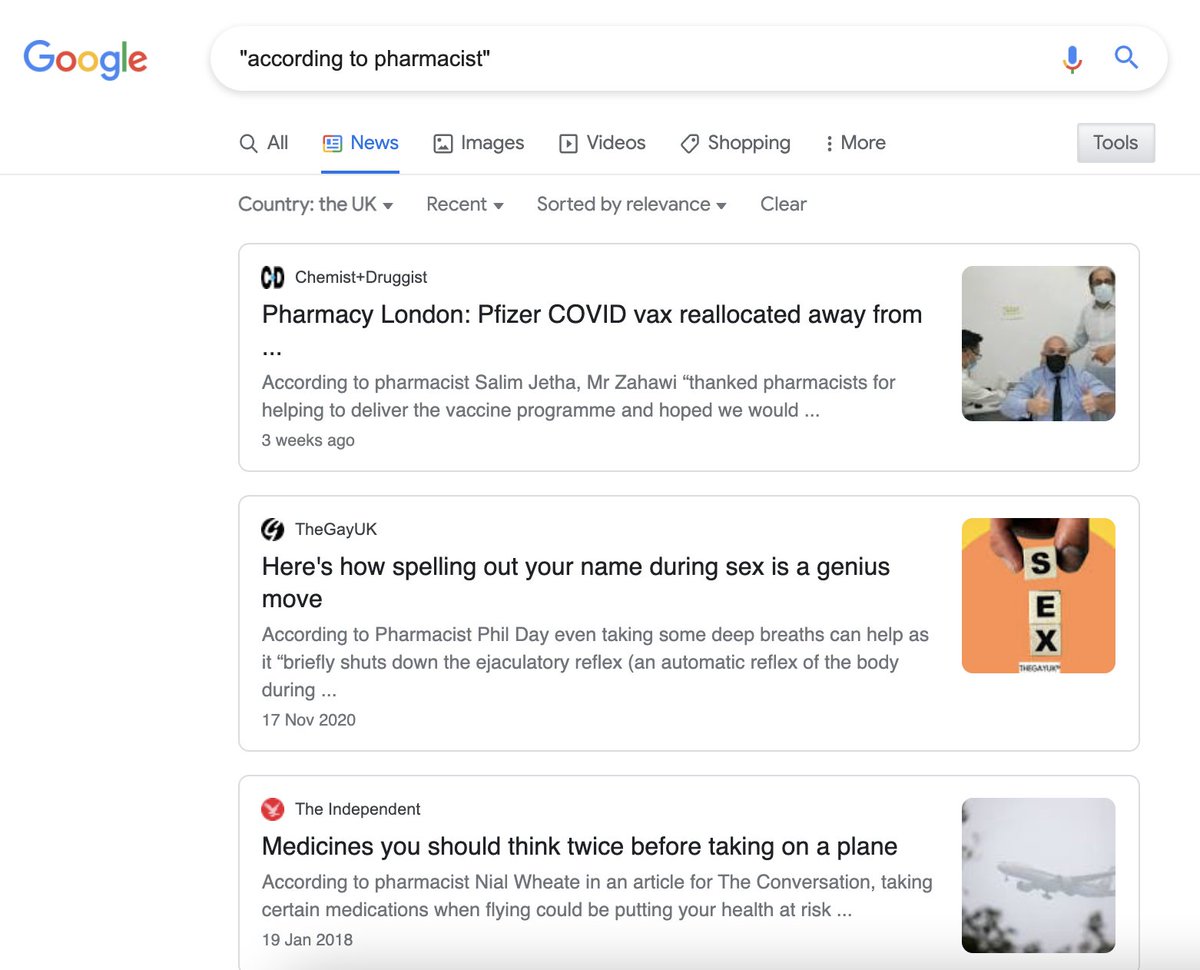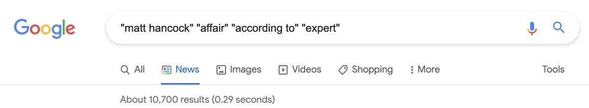 So we head to Google News and make searches like this and find loads of articles about the affair where various experts have been quoted.