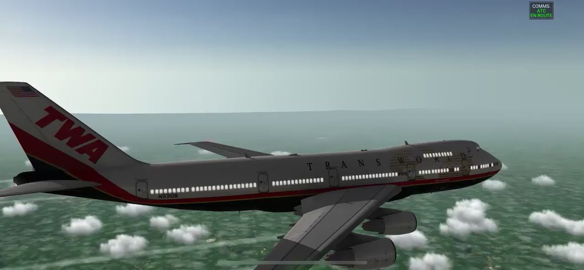 2.- El avión es un tetramotor Boeing 747 SR (aunque en las imágenes del simulador uso un Boeing 747-400 por no disponer del SR). Con capacidad para 550 pasajeros, en aquel momento era el avión más grande del mundo.