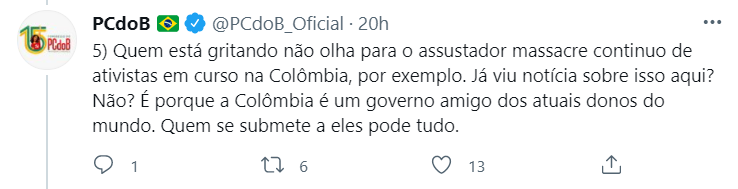 El primer comunicado del @PCdoB_Oficial🇧🇷, llamó a las protestas una "ola reaccionaria golpista" y las imágenes de la protesta serían parte de una campaña armada. pcdob.org.br/noticias/pcdob…