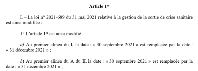 Enfin, le gouvernement et les pouvoirs publics gardent la possibilité d'imposer des mesures de contrôle et des restrictions dans certains territoires jusqu'au 31 décembre, et non plus jusqu'au 30 septembre (à droite, la loi en vigueur).