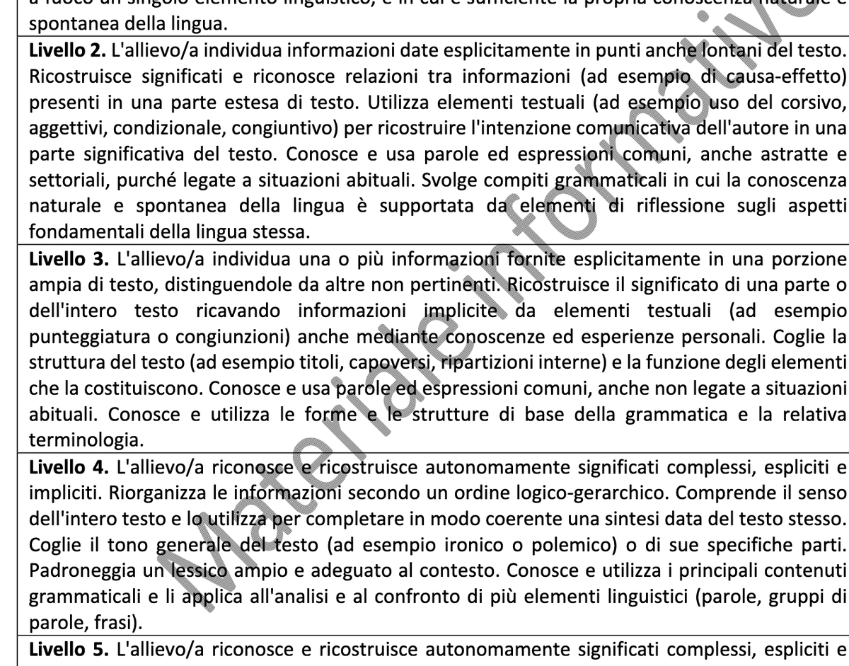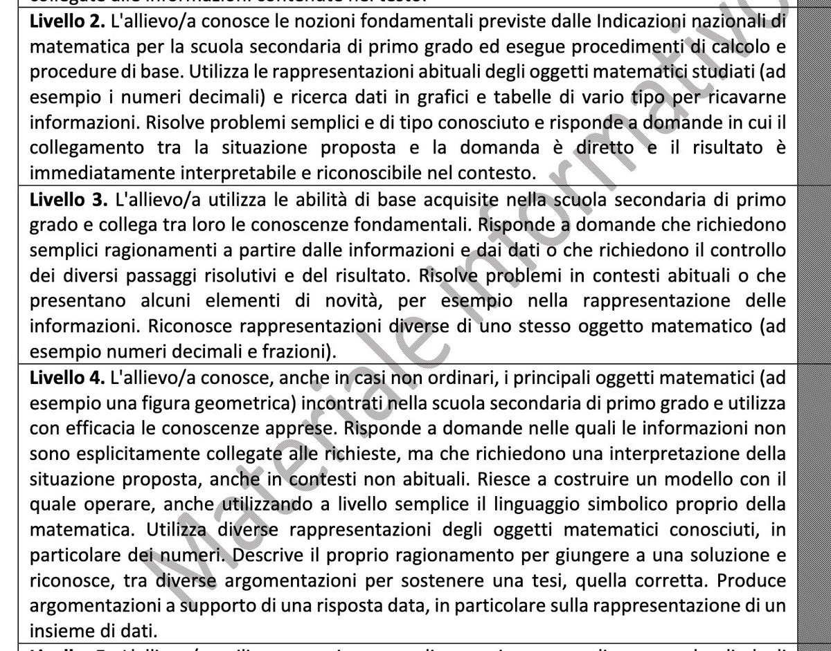 E cioè non riesce a raggiungere il livello 3 descritto qui. Altro pane per i denti di quelli che "eh ma l'istruzione non si fa con i test a crocette"