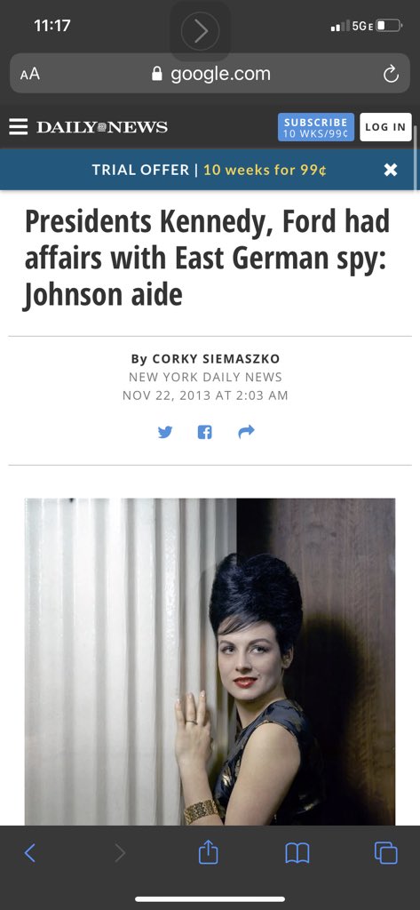 Hoover then used that to blackmail the married Ford into secretly informing him what leads the Warren