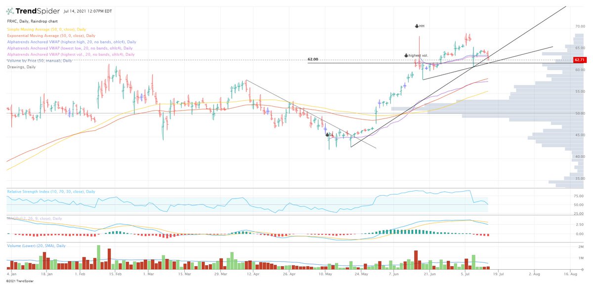 $FRHC looks alright (broke first trend line) as long as we stay above $62