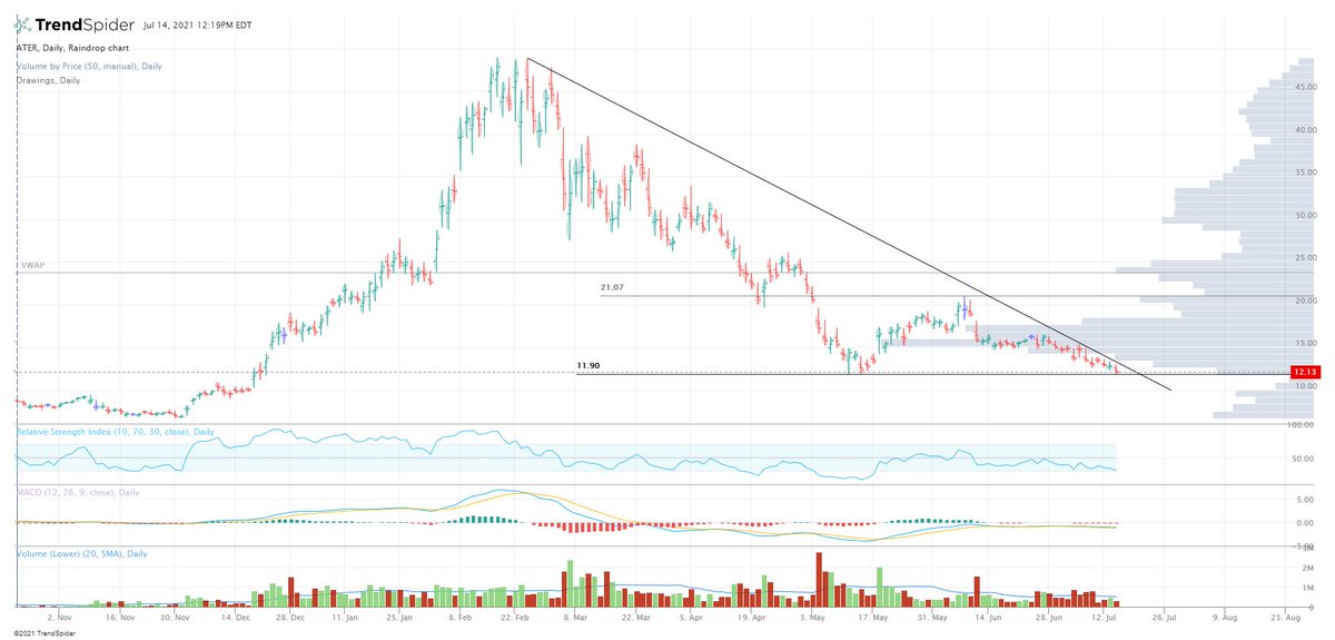 $ATER is sitting on the support line going back to mid May, after which the stock bounced 75-80% higher before the company clobbered investors with a stock offering
