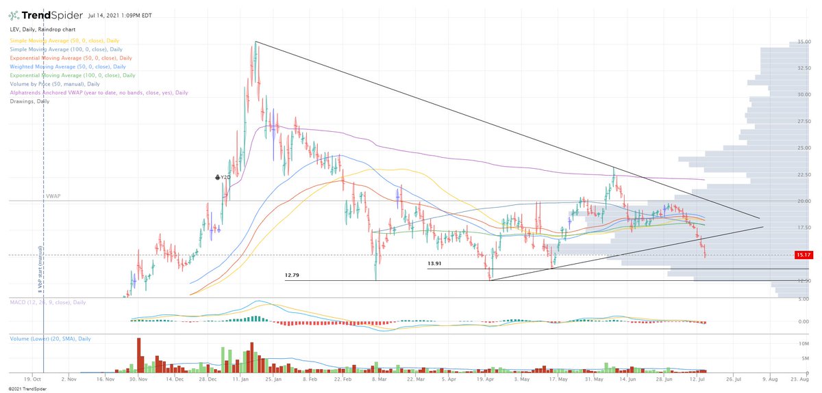 $LEV is another stock I like long-term although no current position, I'd consider getting in around that $13.91 support but otherwise I'd definitely be a buyer under $13 expecting to get a triple bottom then bounce