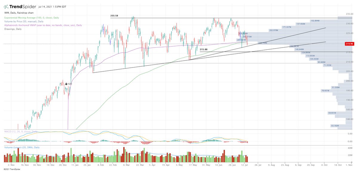If we break below $218.50 on the $IWM then next support would be around $215.75 which would be the trendline that goes back to January