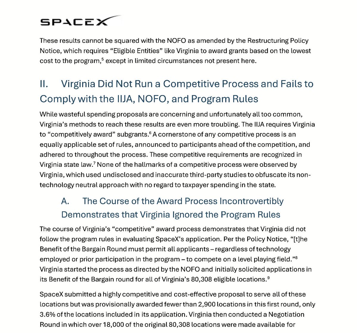 NEWS: SpaceX is protesting Virginia’s $613M plan to expand high-speed internet access, accusing the state of deliberately denying a larger slice of the subsidies to @Starlink.