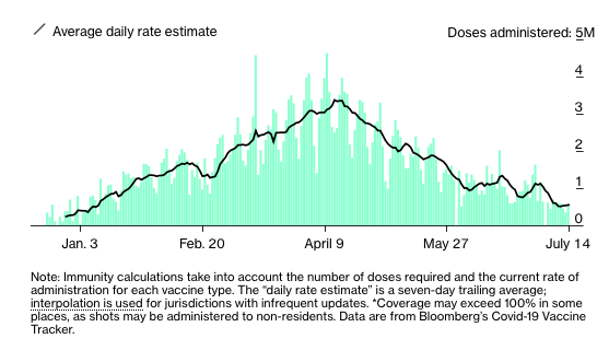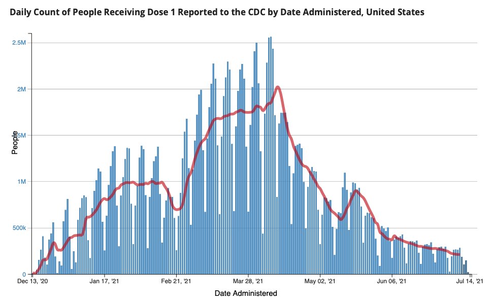 The number of Americans receiving their first vaccine shot has slowed to a crawl.